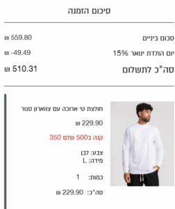 השתמשו בו לקנייה באתר והנחה של 15% תופעל
